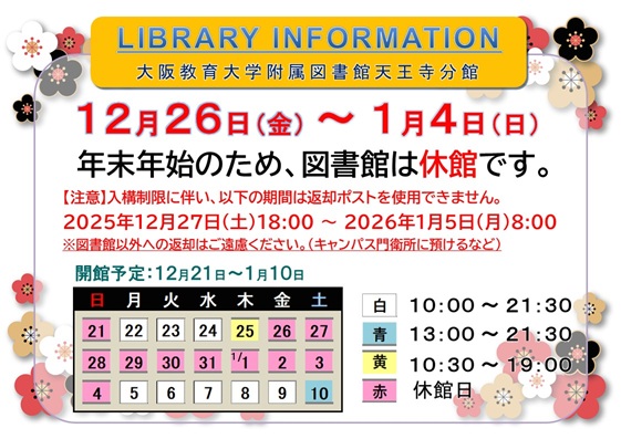 E-mail : lib-zasshi@bur.osaka-kyoiku.ac.jp(@は半角に置き換えてください)