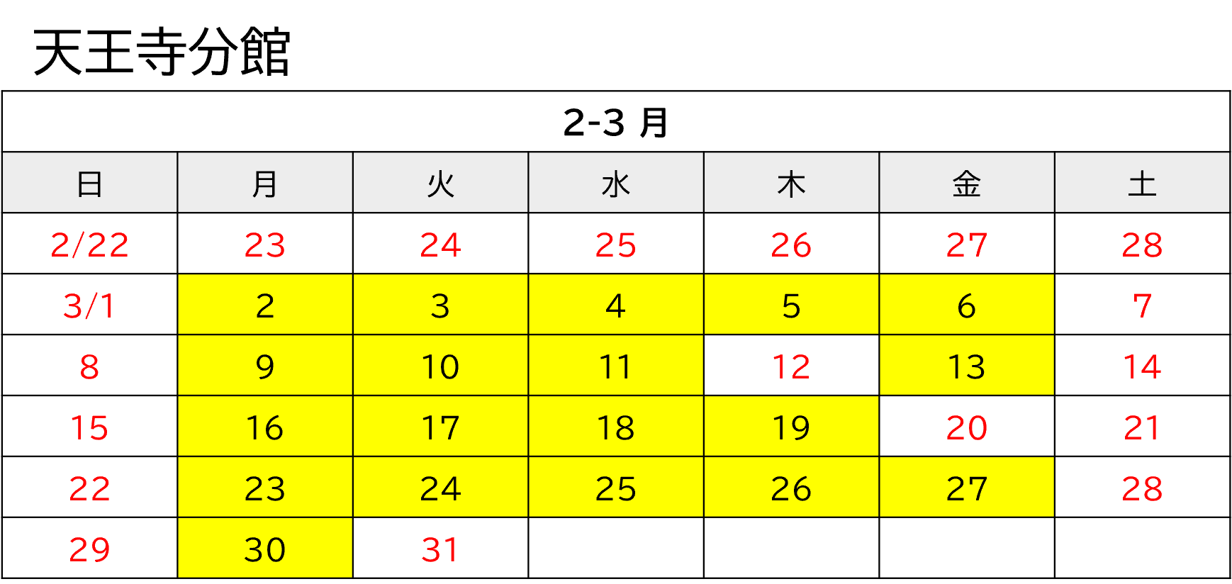 開館カレンダー