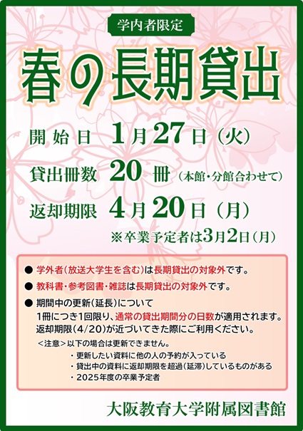 1月27日(火)から、春の長期貸出を開始します。