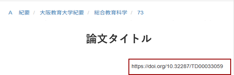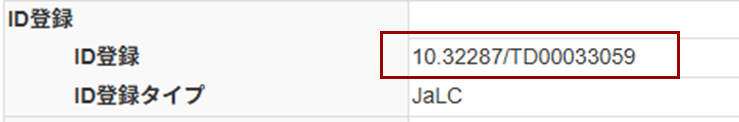 ID登録の部分(本学は「10.32287/TD+8桁の数字」)が、DOIです。