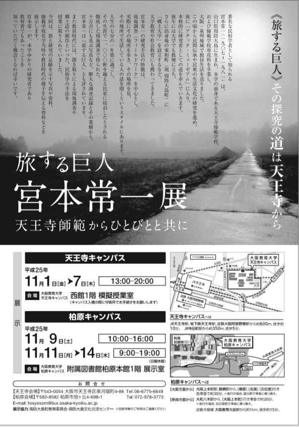 2013年11月 「旅する巨人 宮本常一展 天王寺師範からひとびとと共に」を天王寺・柏原両キャンパスで開催