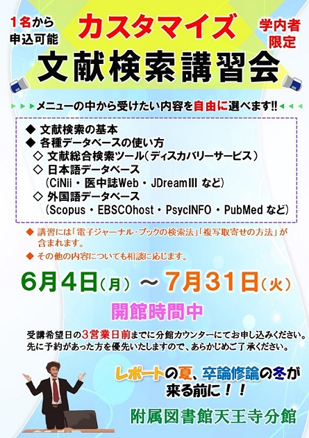 受講希望日の3営業日前までに天王寺分館カウンターにてお申し込みください。